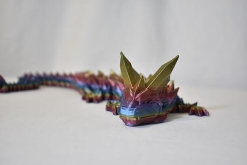 Drakoryx Prime este dragonul suprem din colecția Drakoryx. Cu dimensiunea XL și un design articulat impresionant, acest dragon 3D imprimat este o piesă de impact, creată pentru cei care caută ceva cu adevărat spectaculos. Fiecare segment este flexibil, iar detaliile atent realizate îi oferă un aspect puternic și realist. Ideal ca obiect de colecție, decor premium sau cadou memorabil.